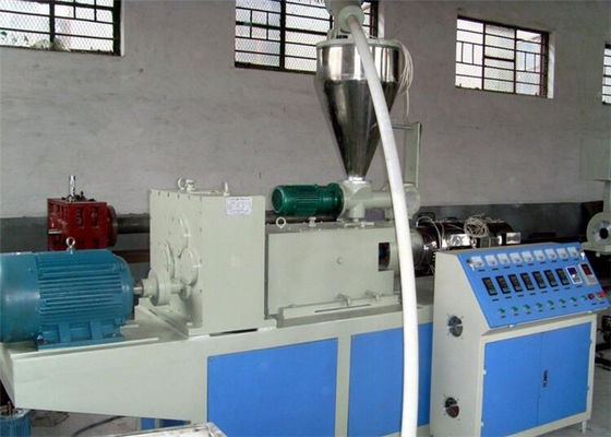 Нормальная производственная линия профиля ПВК составлена главных штрангпресса, прессформы, таблицы тарировки вакуума, перетаскивания-, вырезывания и штабелеукладчика.